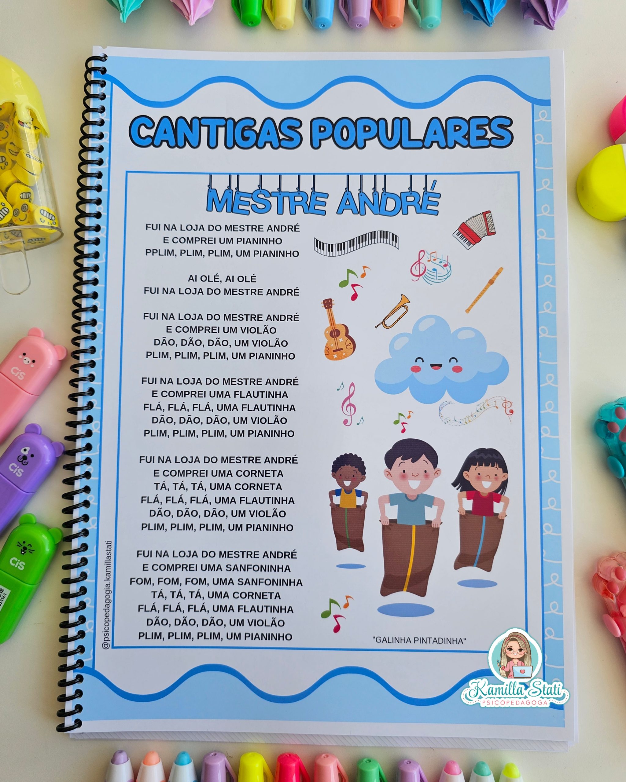 A apostila cantigas populares está maravilhosa, recomendada para trabalhar os alunos da educação infantil e fase de alfabetização. Contém dezenas de músicas populares que lembram a infância, além de contribuir para o desenvolvimento cognitivo das crianças, favorecendo a recepção de informações de modo espontâneo por ser de fácil compreensão e significação. Com as cantigas populares a aprendizagem e desenvolvimento dos pequenos será mais ampla e positiva.