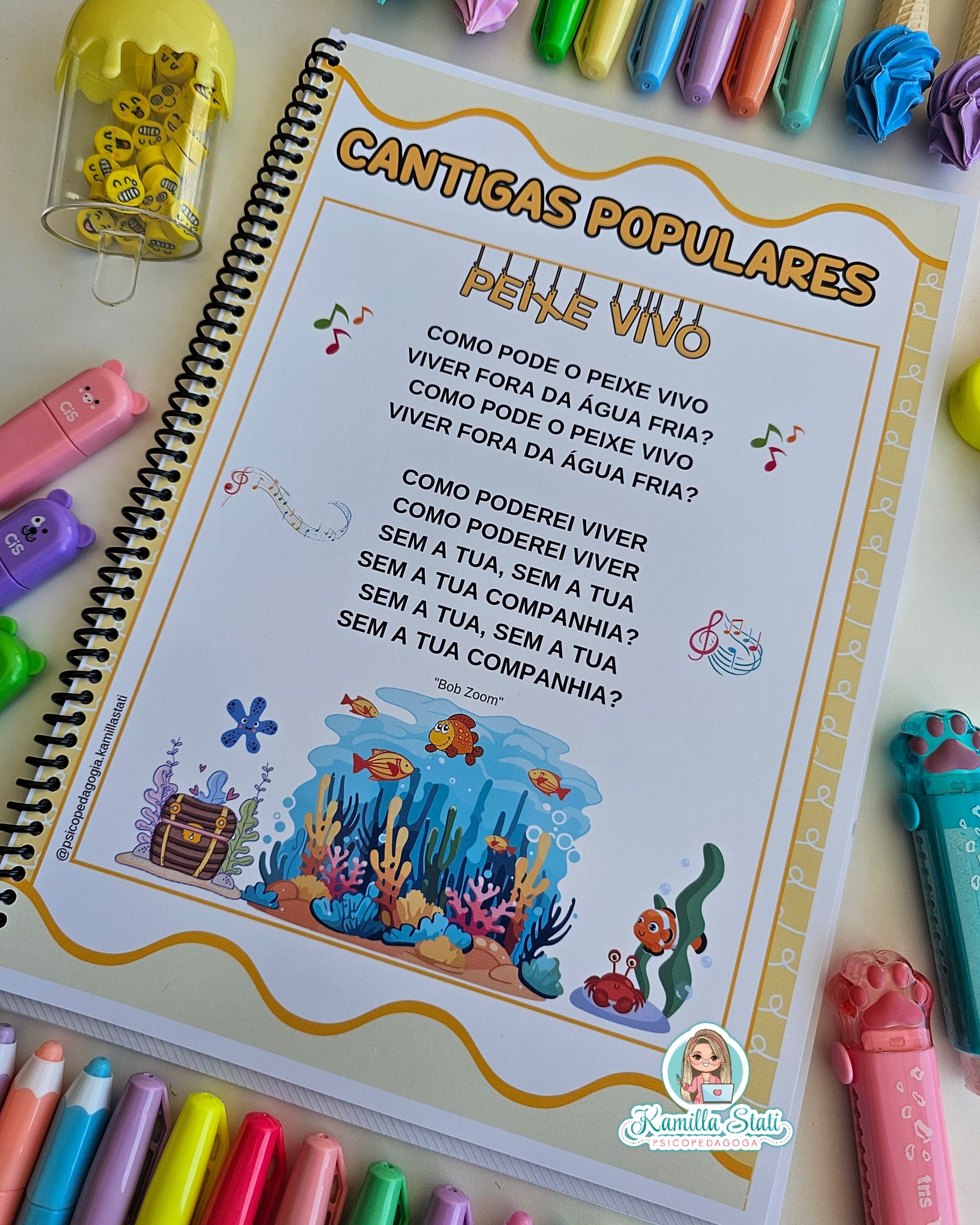 -Não é necessário encadernar para trabalhar com seus alunos, você pode usar folhas soltas se preferir.