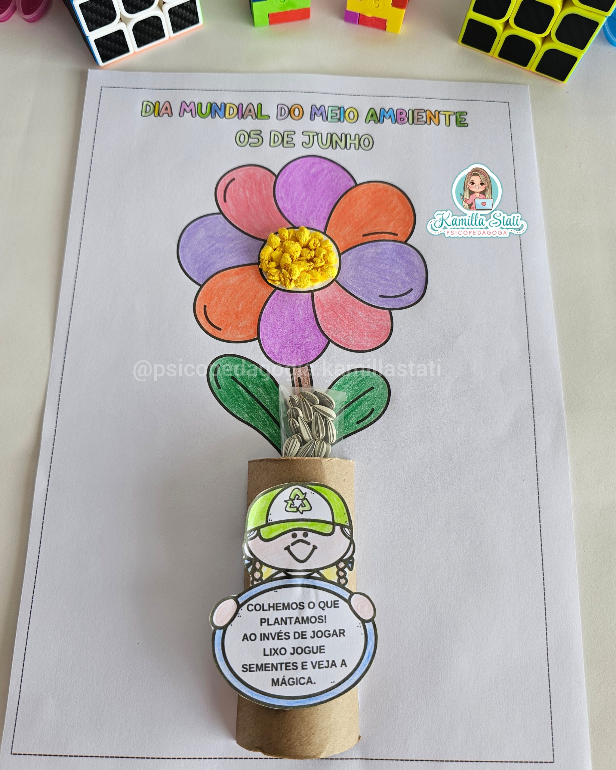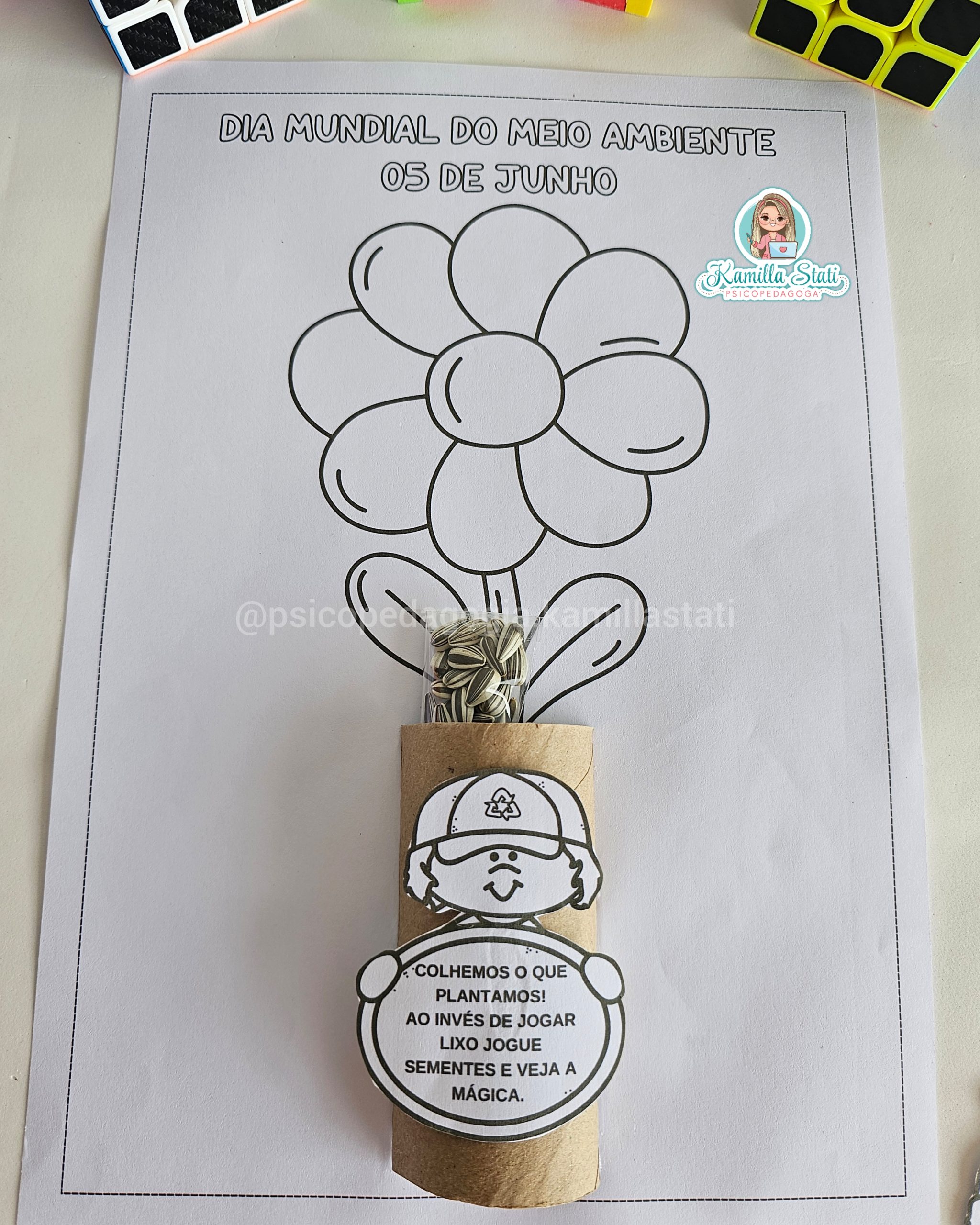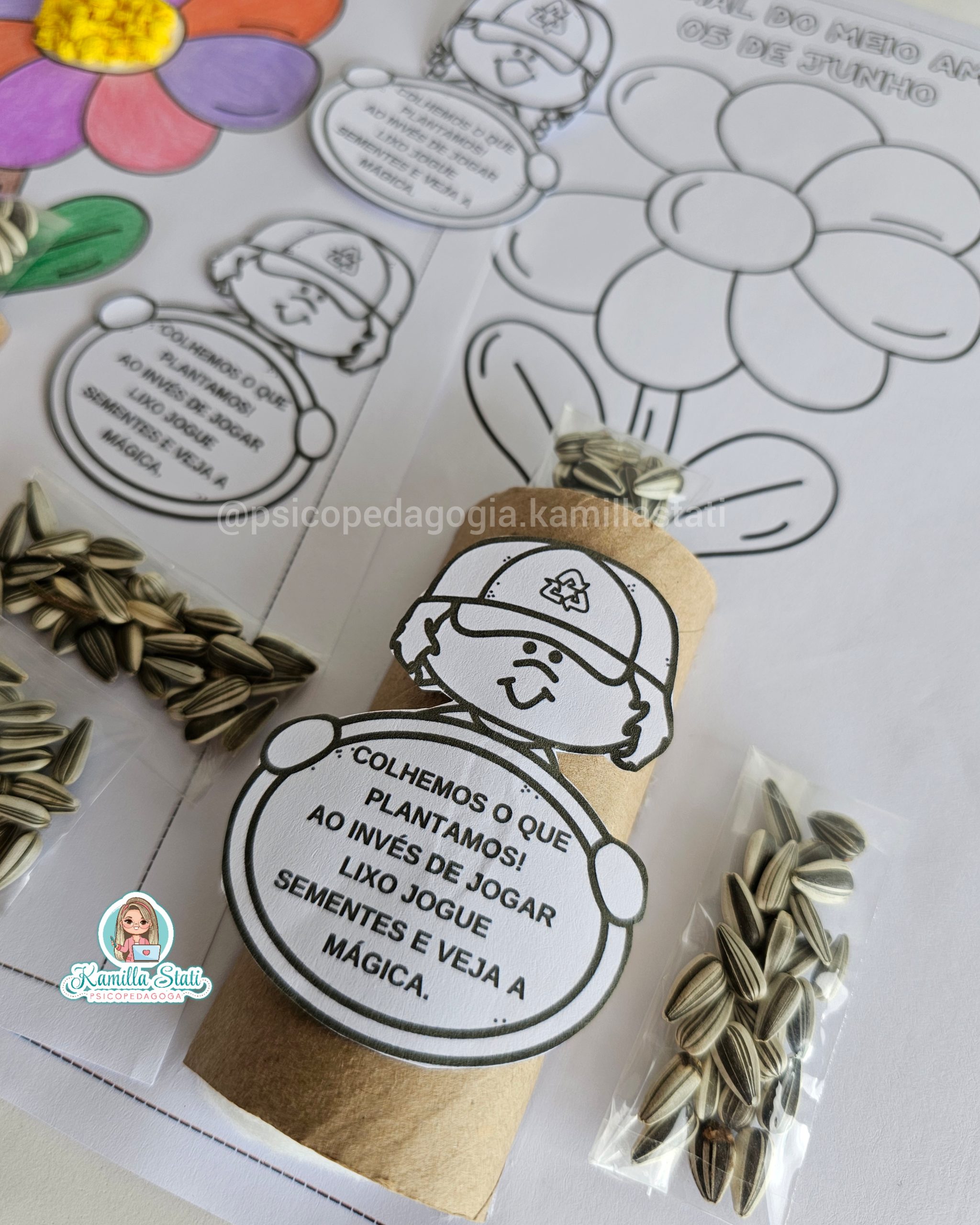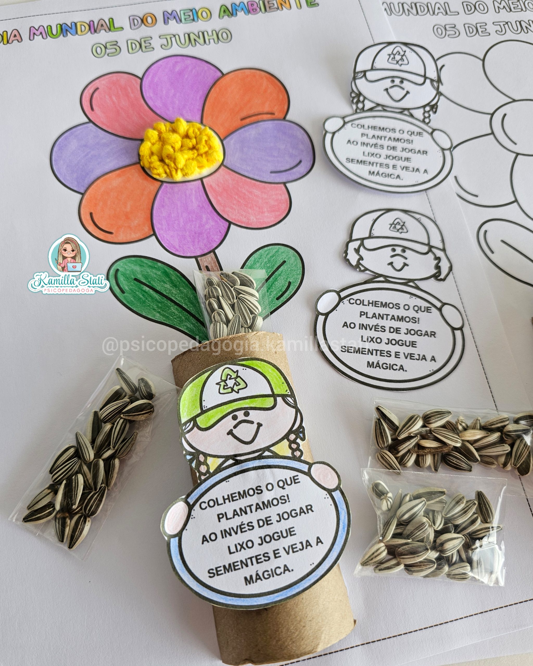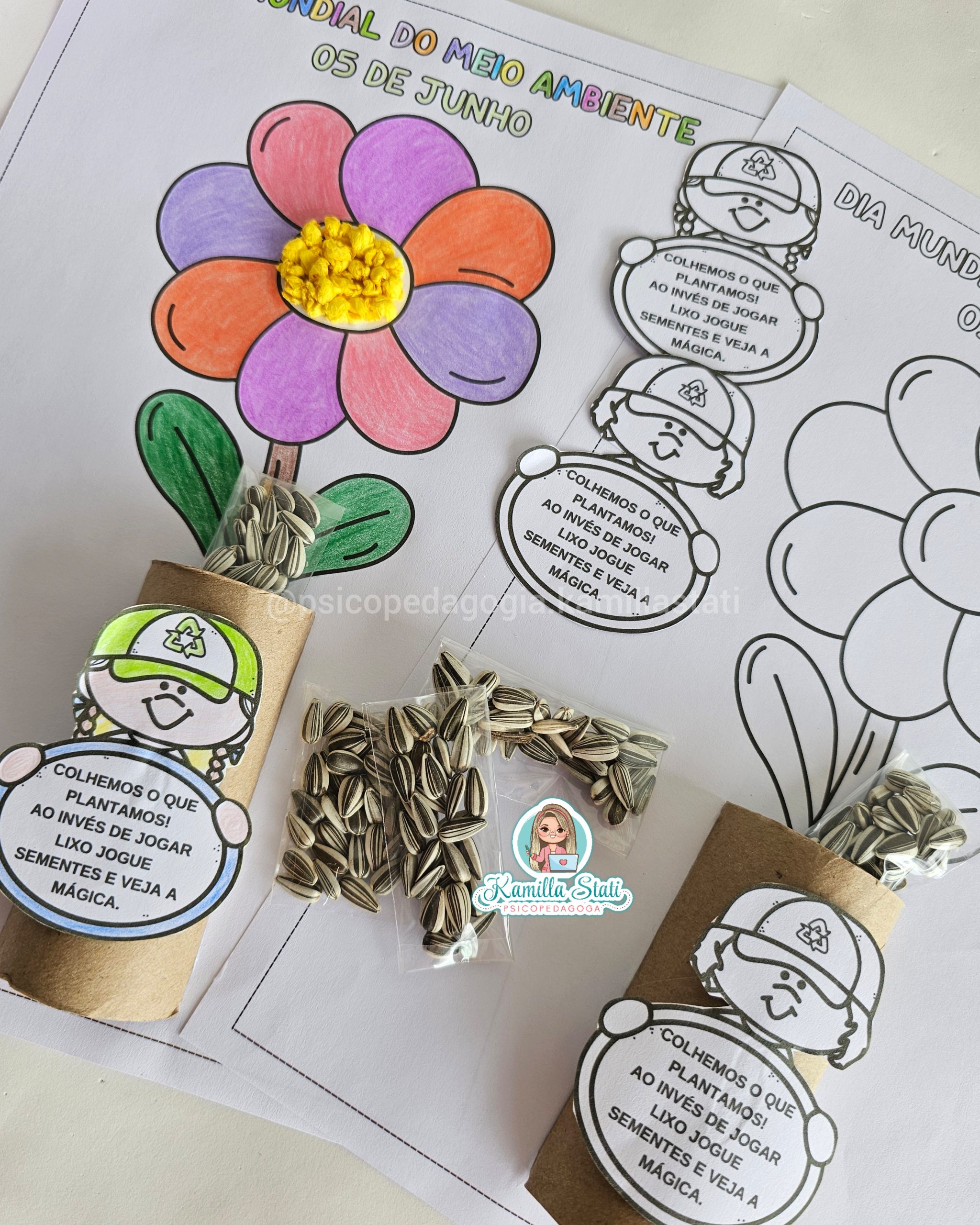 Essa atividade tem como objetivo incentivar a criança a plantar sementes ao invés de jogar lixo no chão. Uma atividade divertida e interativa para trabalhar no dia do meio ambiente.