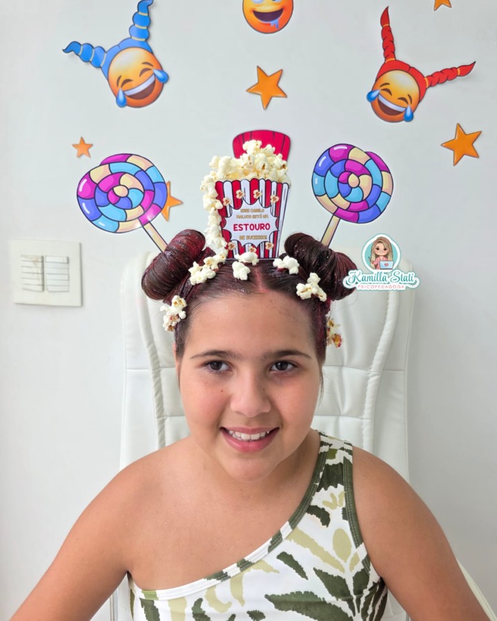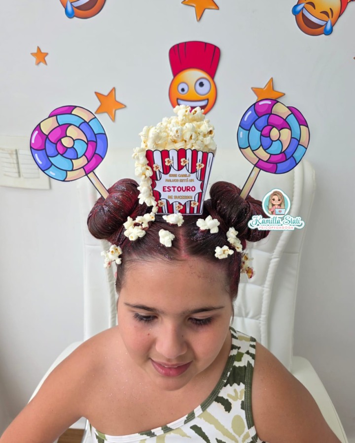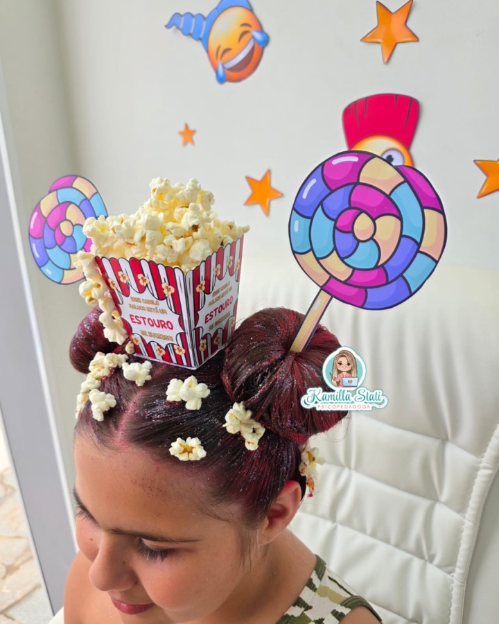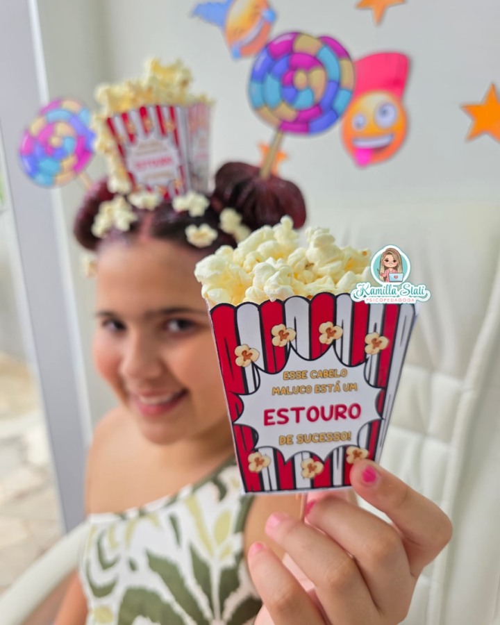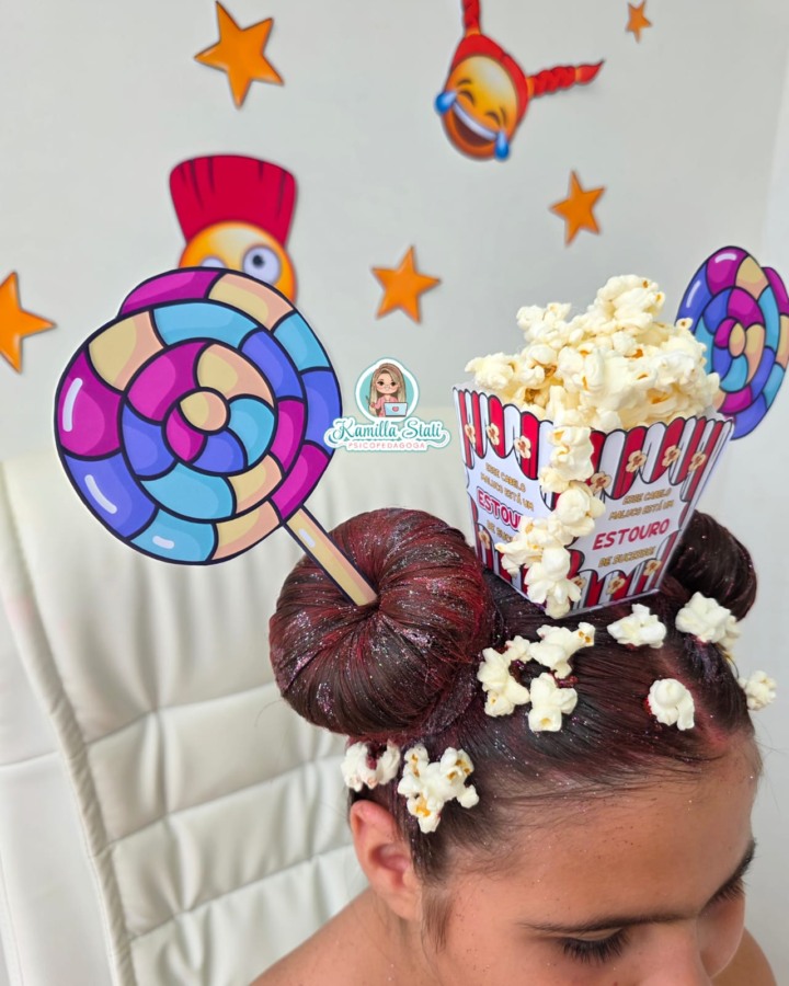 Esse recurso é perfeito para transformar o Dia do Cabelo Maluco em uma experiência inesquecível e super divertida. Ele traz a mistura de pipocas e pirulitos coloridos, proporcionando um toque lúdico e cheio de imaginação.