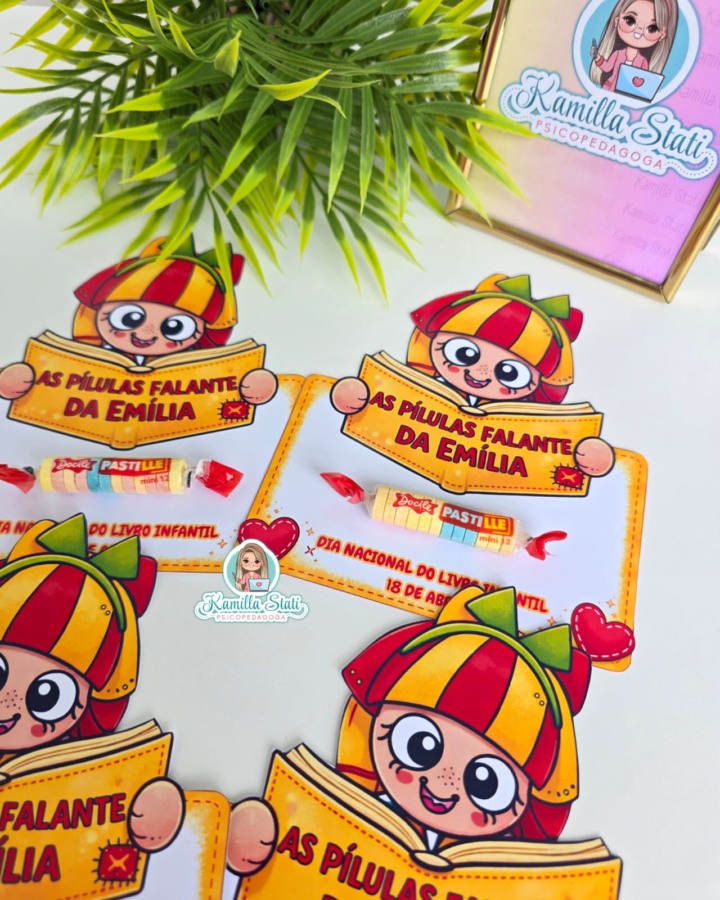 ✅️Inspirado no universo encantador da Emília, esse cartão traz a proposta lúdica das “pílulas falantes”, incentivando a imaginação e o gosto pela leitura de forma leve e envolvente.