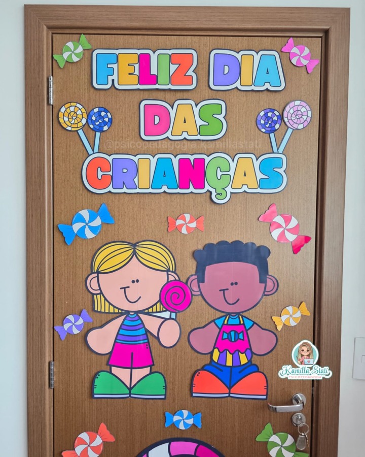 O Dia das Crianças é uma data especial que celebra a alegria, a imaginação e a magia dessa fase única da vida. Esta decoração de porta foi cuidadosamente desenvolvida para transformar o ambiente escolar em um espaço cheio de cores, encanto e significado, tornando a semana das crianças ainda mais divertida e inesquecível. 🌈✨