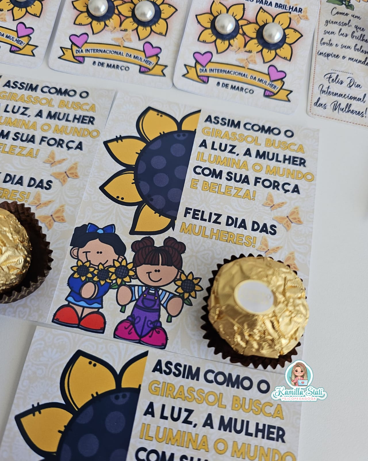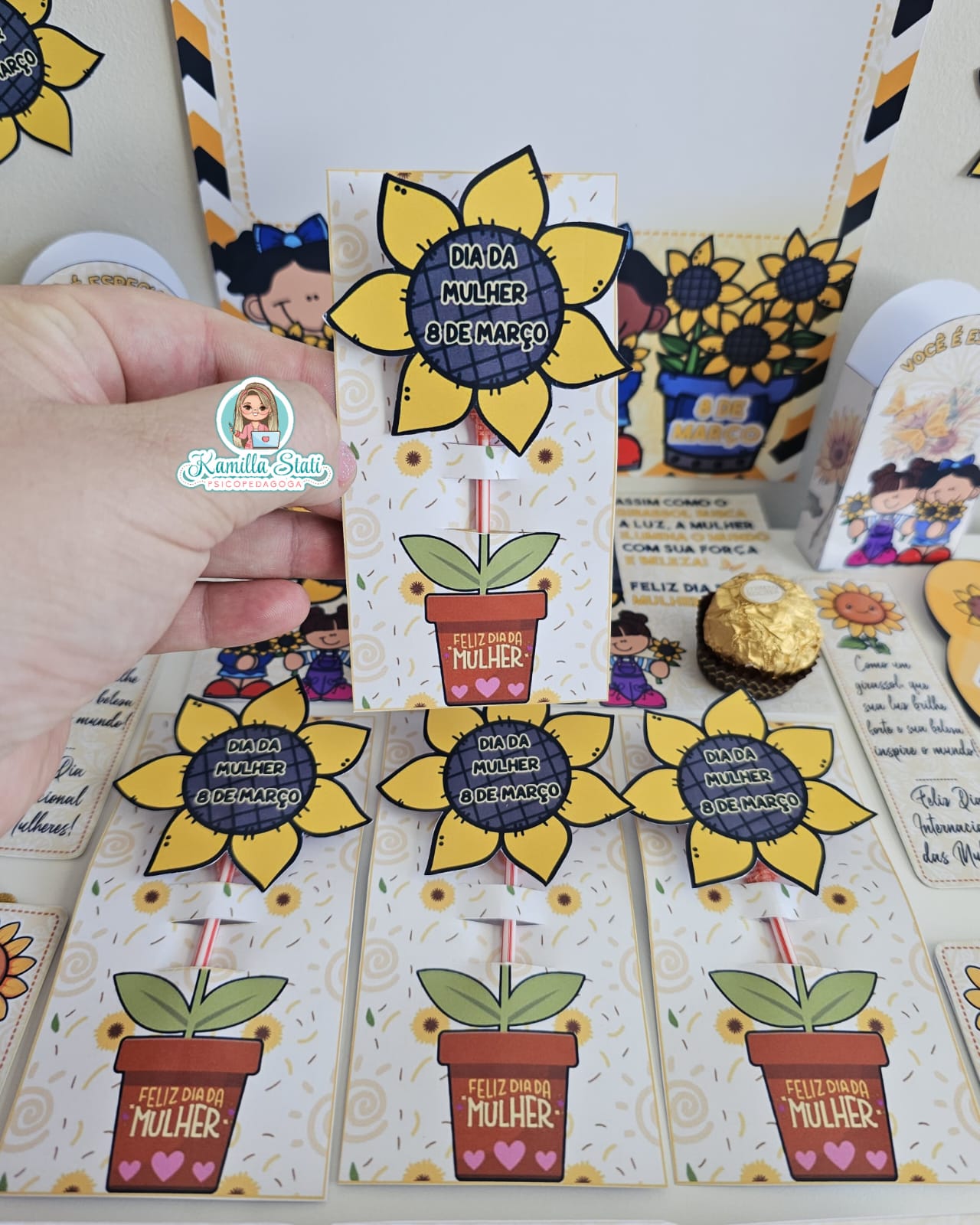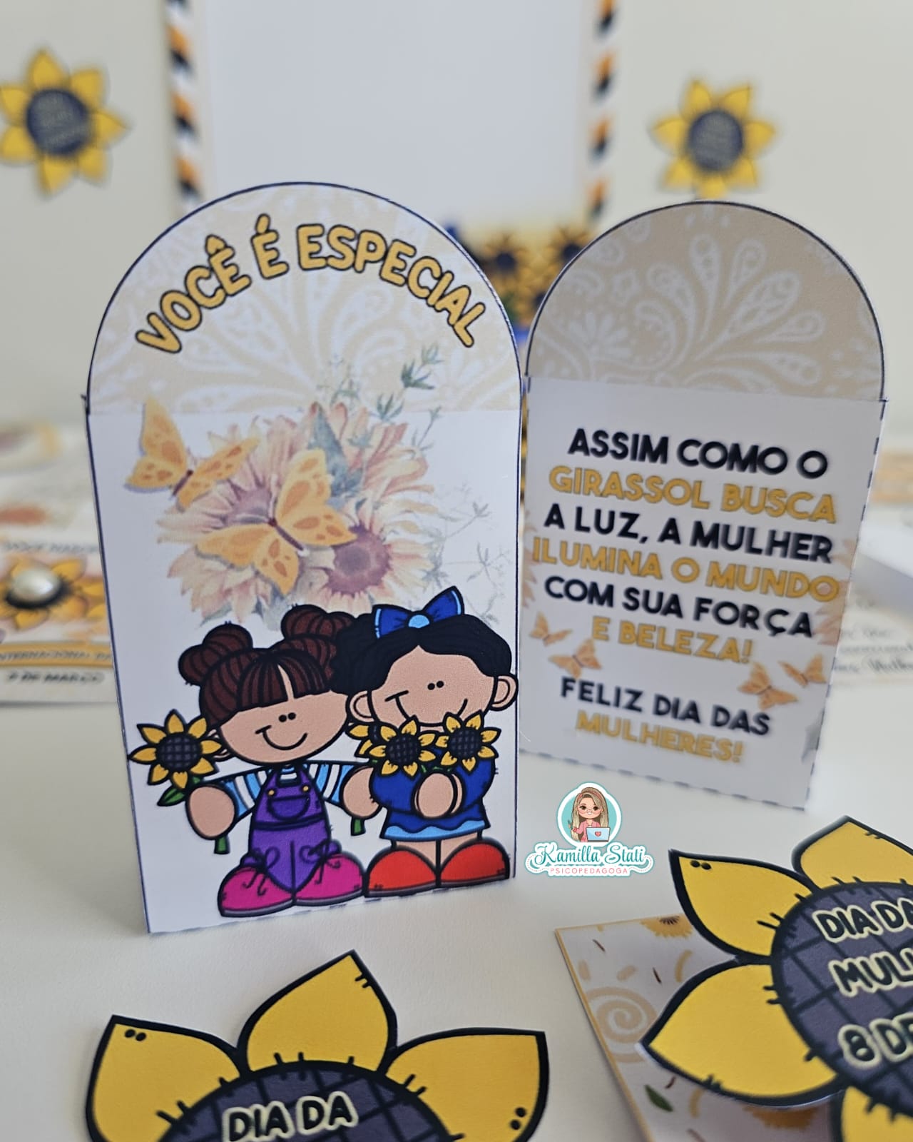 Celebre o dia da mulher com a delicadeza e a força do girassol. O kit foi criado para homenagear mulheres incríveis com um toque de beleza, luz e positividade. Perfeito para escolas, empresas e eventos especiais. O arquivo é composto por vários modelos lembrancinhas, contendo: