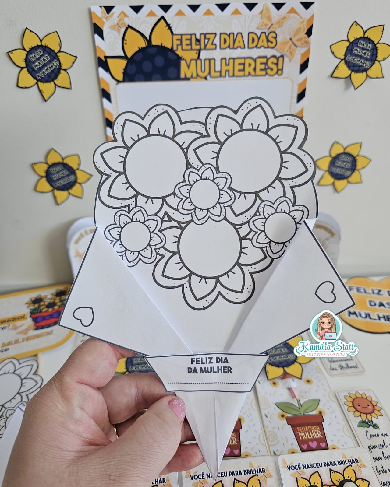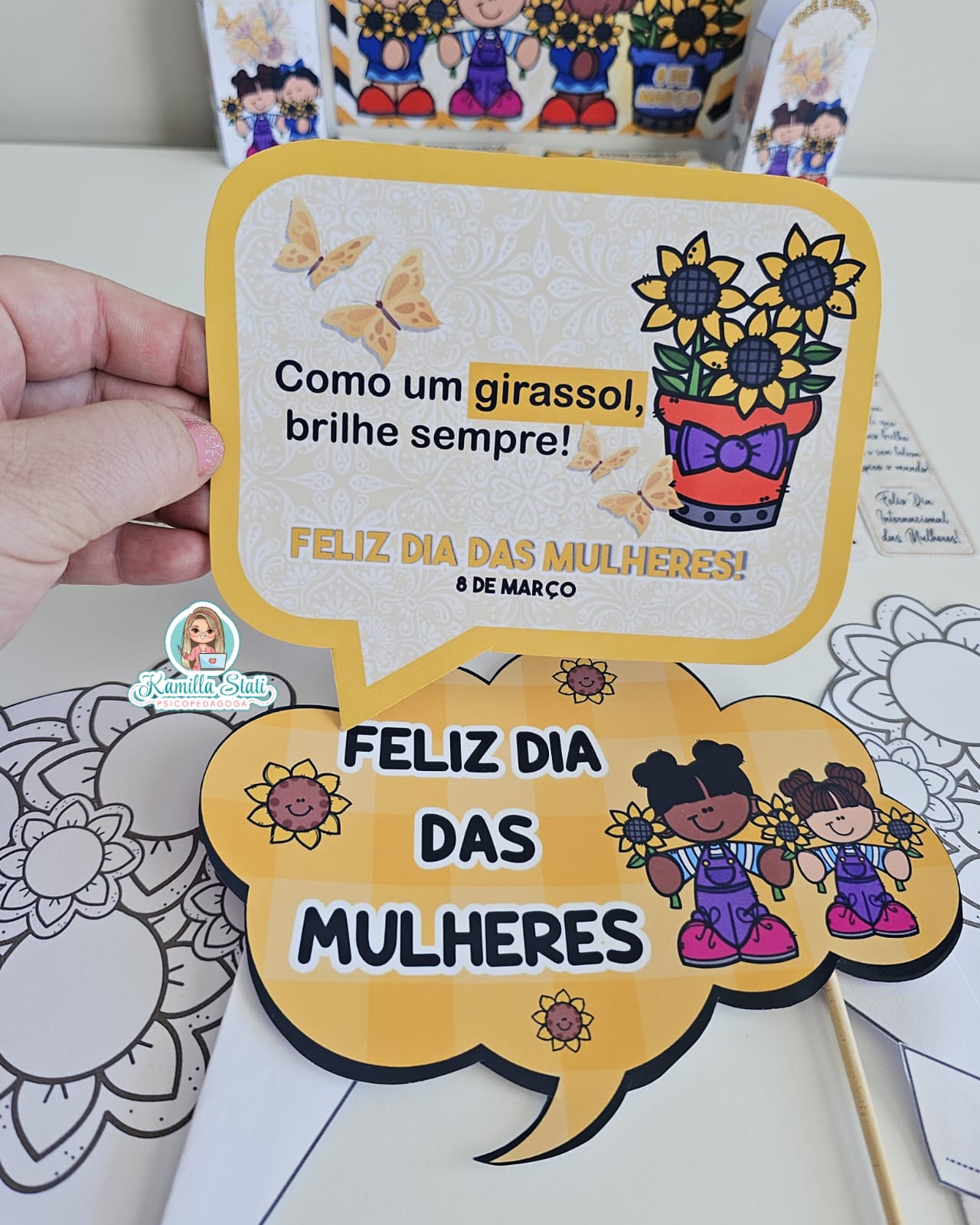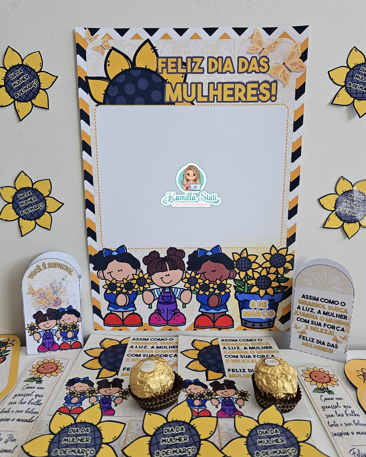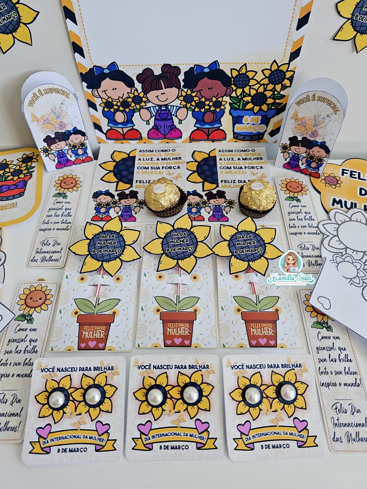 Celebre o dia da mulher com a delicadeza e a força do girassol. O kit foi criado para homenagear mulheres incríveis com um toque de beleza, luz e positividade. Perfeito para escolas, empresas e eventos especiais. O arquivo é composto por vários modelos lembrancinhas, contendo: