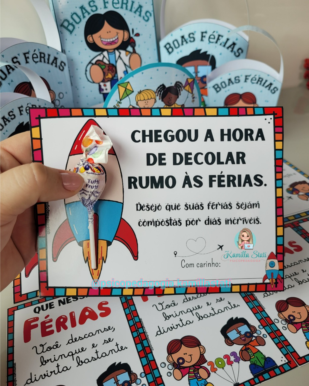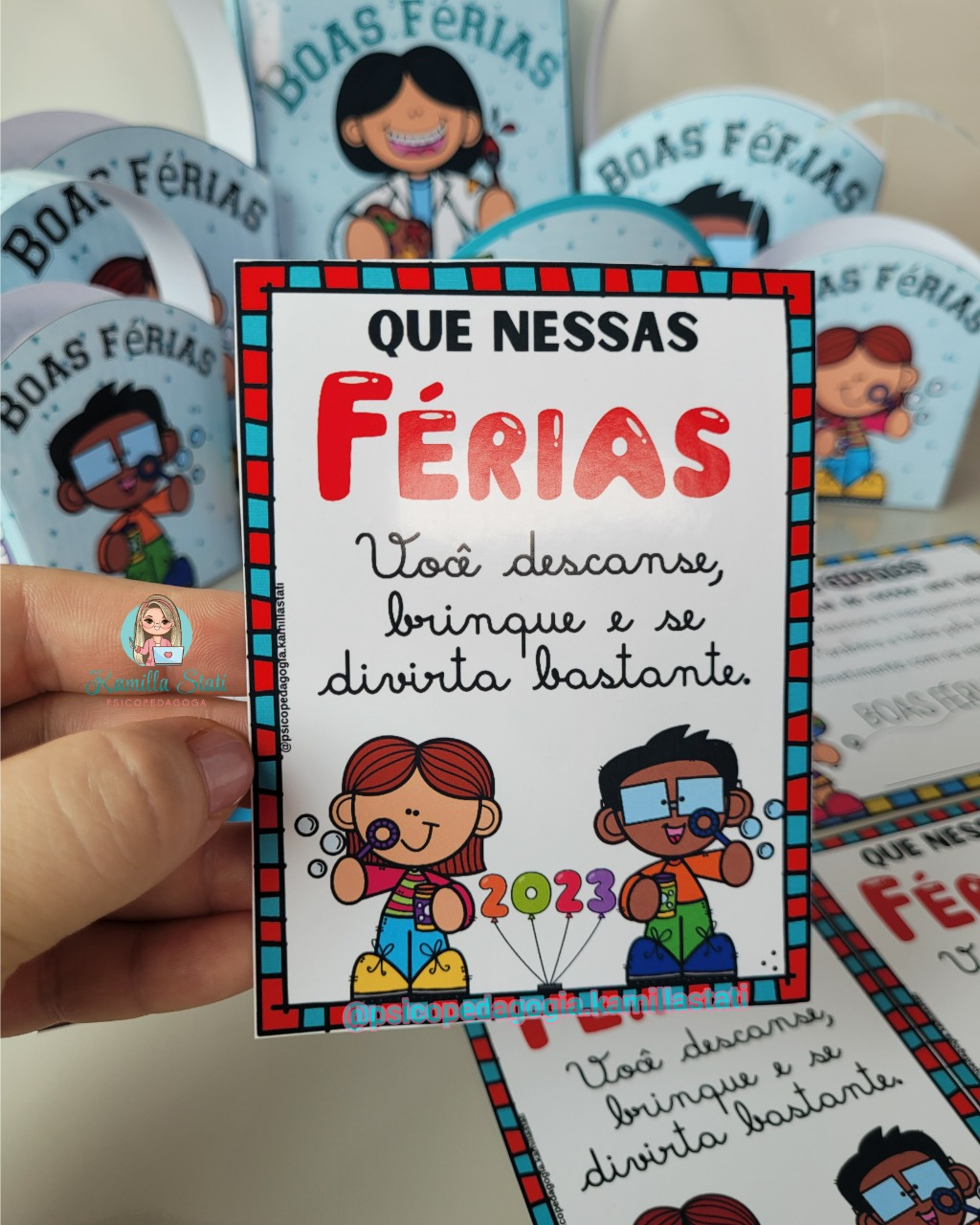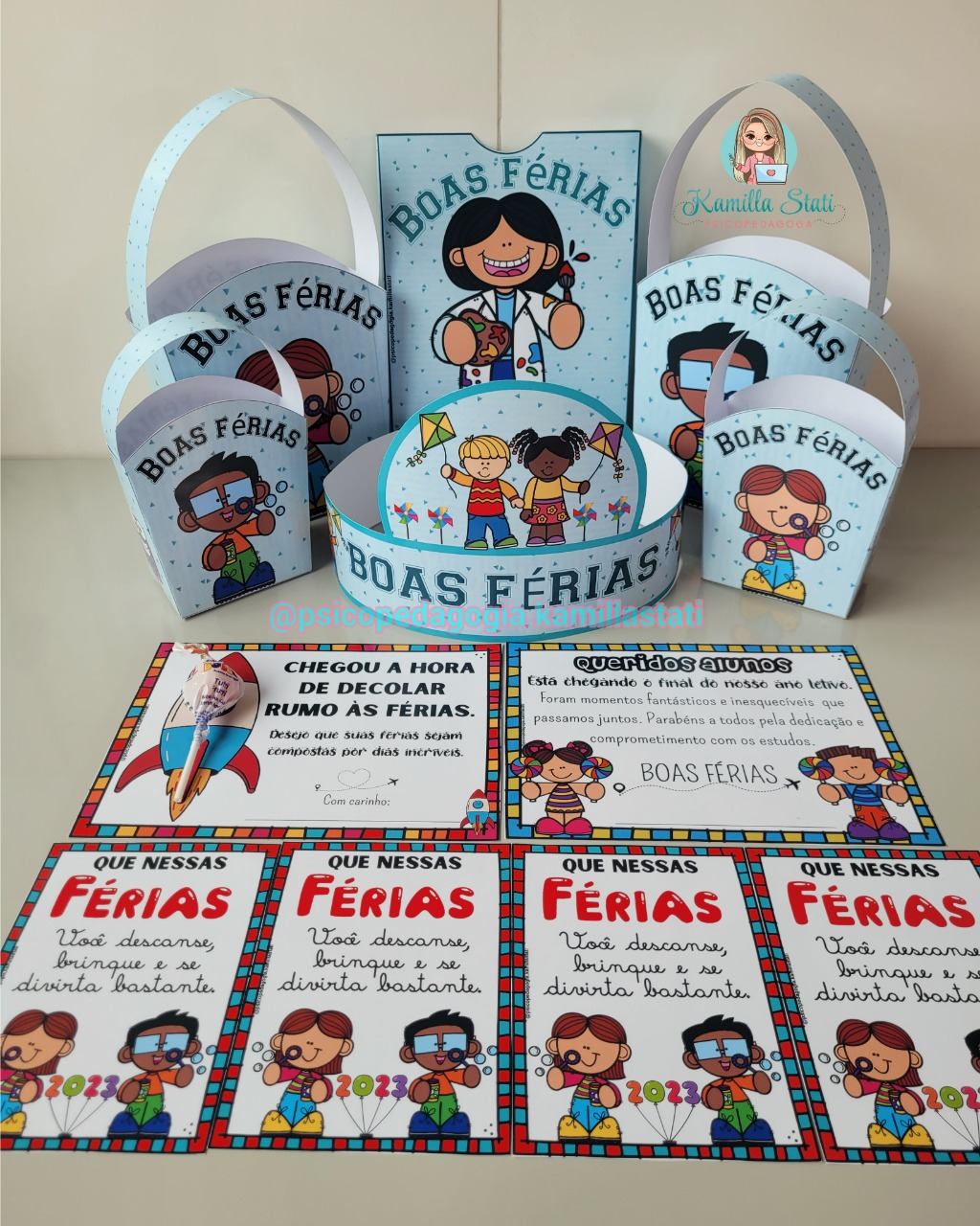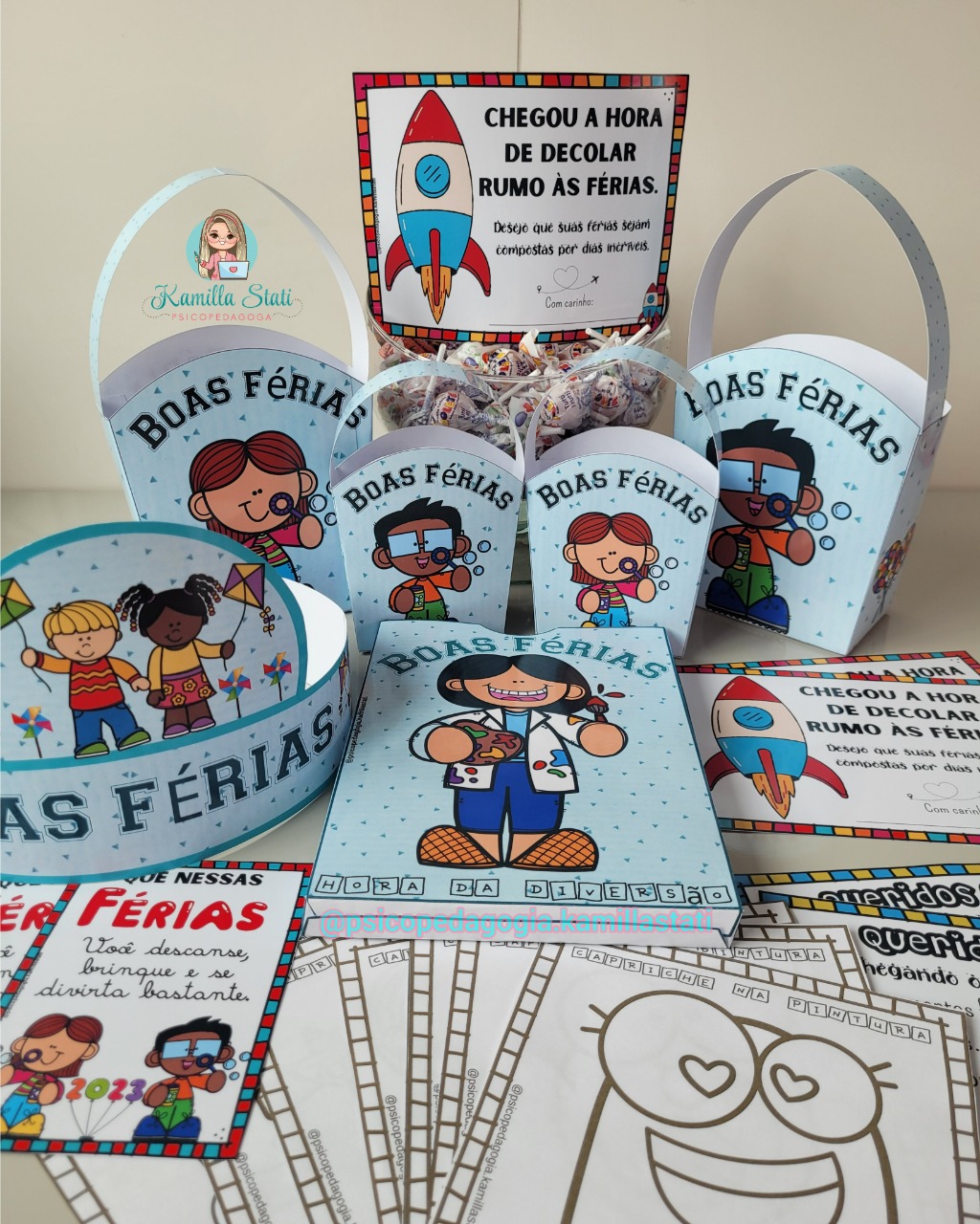 O kit boas férias está maravilhoso para presentear as crianças que irão sair de férias de forma lúdica e divertida.