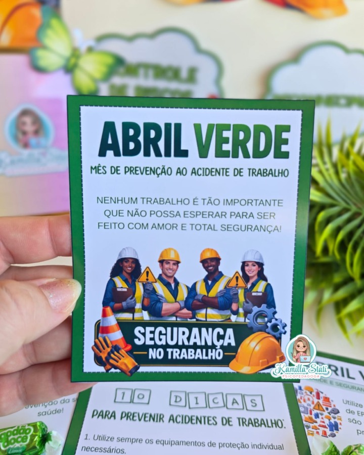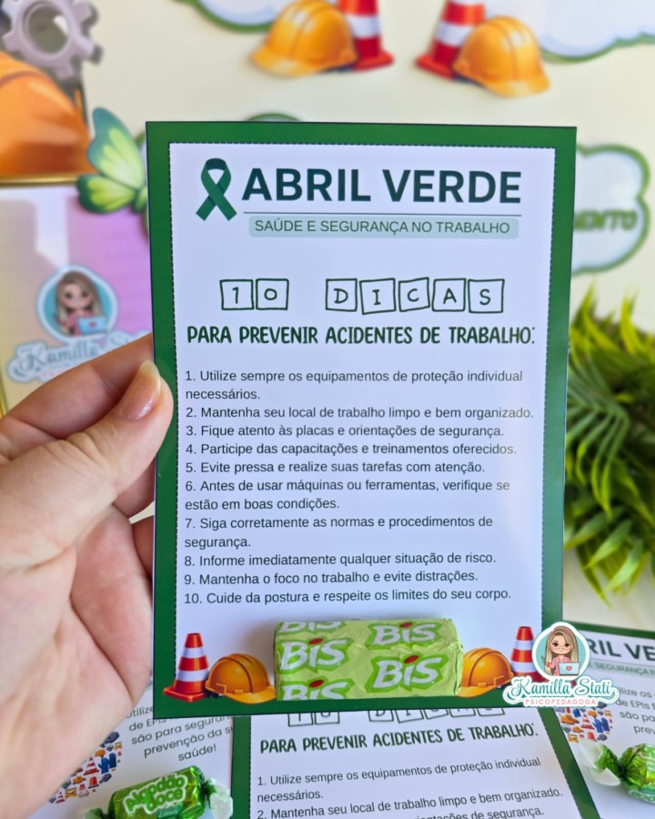 ✅️Um modelo de cartão com dicas para prevenir acidentes de trabalho ( dois por folha).