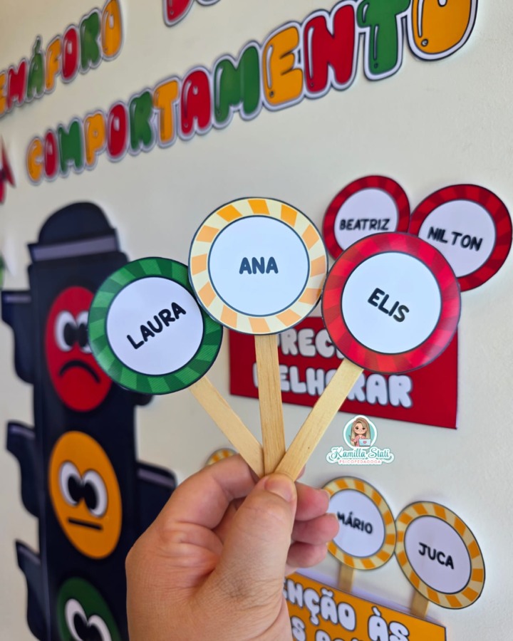 ✅Inspirado nas cores do semáforo, o material ajuda as crianças a compreenderem, refletirem e regularem seus comportamentos de forma clara, respeitosa e positiva promovendo autonomia e consciência das próprias ações.